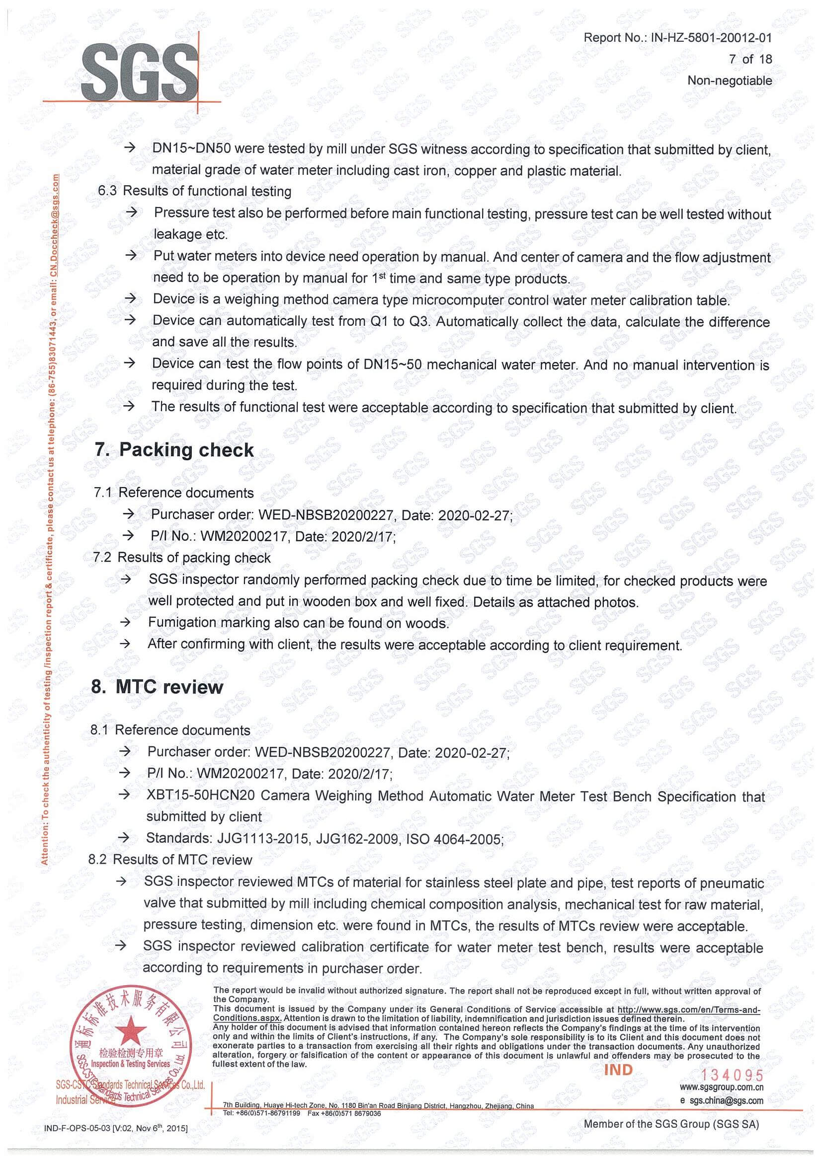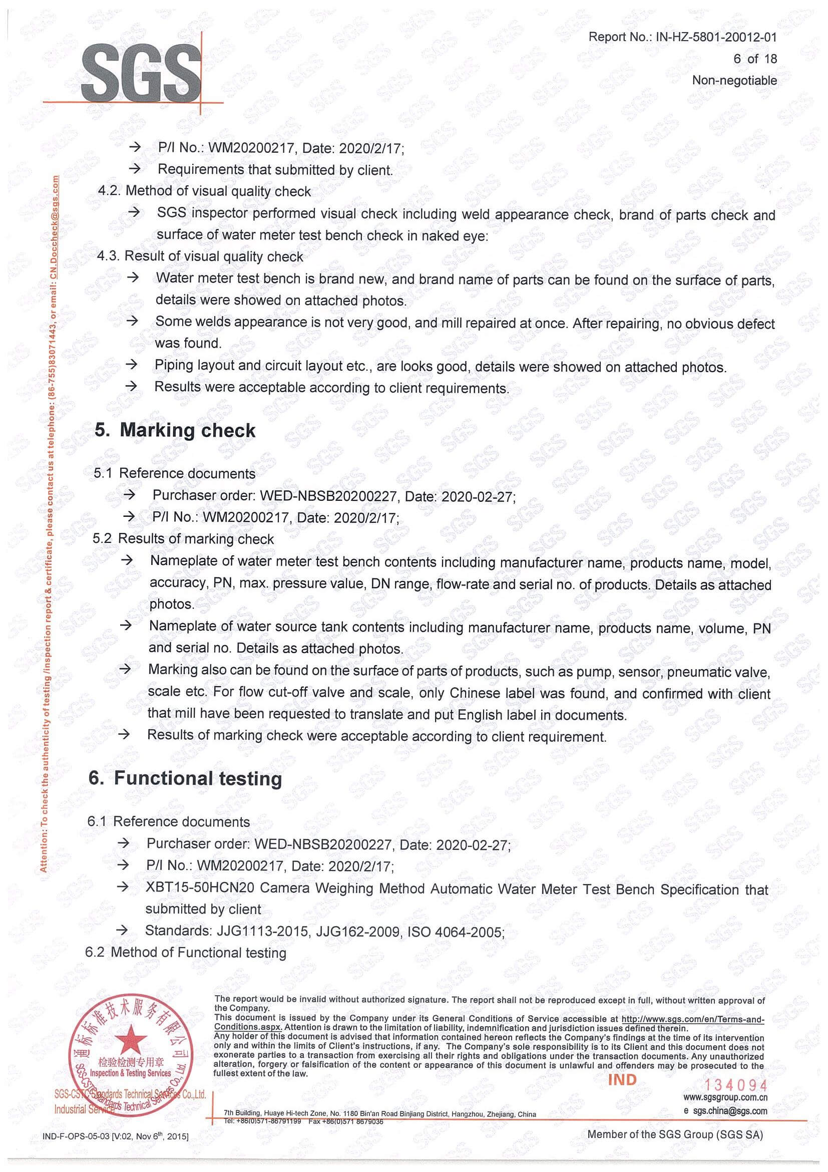 Inspection Standard: Applied standard: ISO6817; Performance evaluation standard: ISO9104