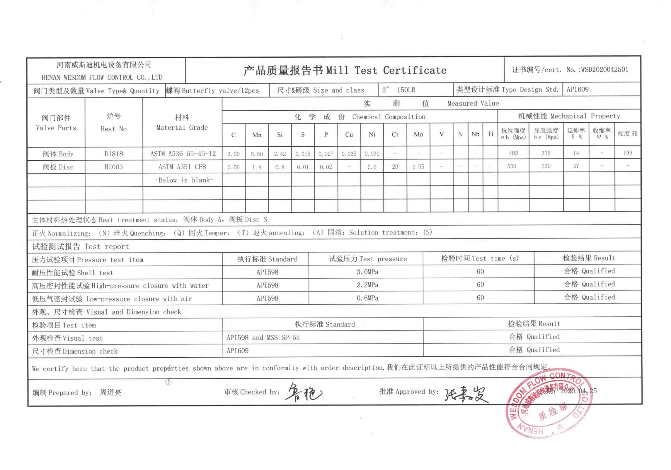 Inspection Standard: EN12266, API 598,GB/T 13927-92