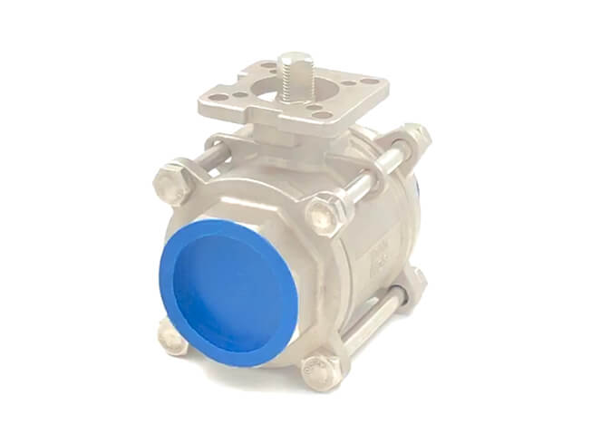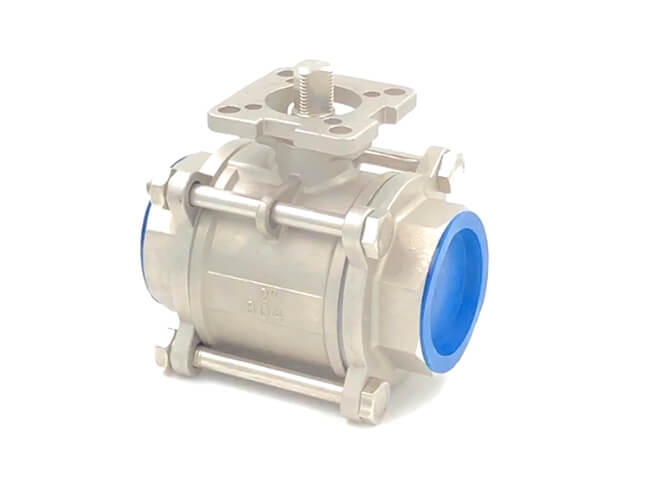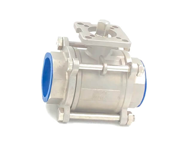 This is three piece internal threaded ball valve with high platform, after being equipped with actuators, it can be widely used in electric, water, food, pneumatic, chemistry industries. Fully open or fully closed, the sealing surface of the ball and the valve seat is isolated from the medium, and the passage of the medium will not cause the erosion of the sealing surface of the valve.
