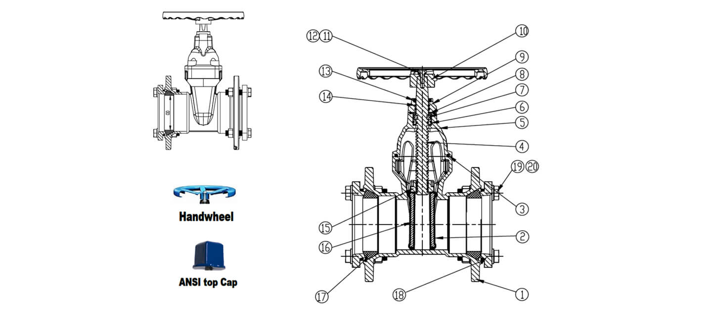 | 10 | Handwheel/Cap | Ductile Cast Iron GJS 500-7 | Bronze |
