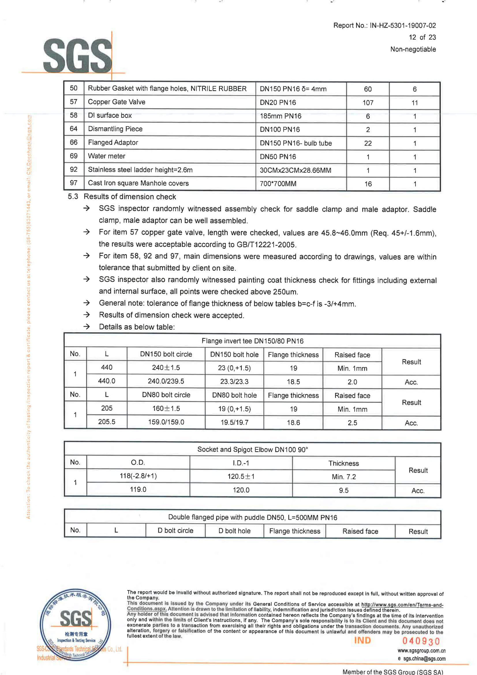 All valves and fittings were through SGS Inspection.
