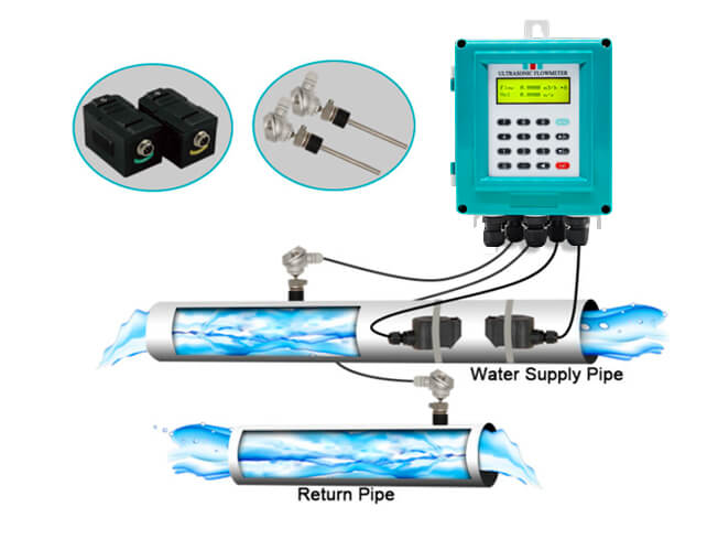 Portable ultrasonic flow meter is used in temporary on-site measurement of different pipelines throughout the project.